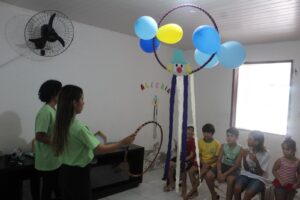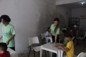 Este projeto propõe a realização de atividades de convivência e fortalecimento de vínculos atendendo cerca de 20 crianças, onde temos oficinas com materiais recicláveis, brincadeiras lúdicas, oficina de leitura, a faixa etária é de 6 a 12 anos.